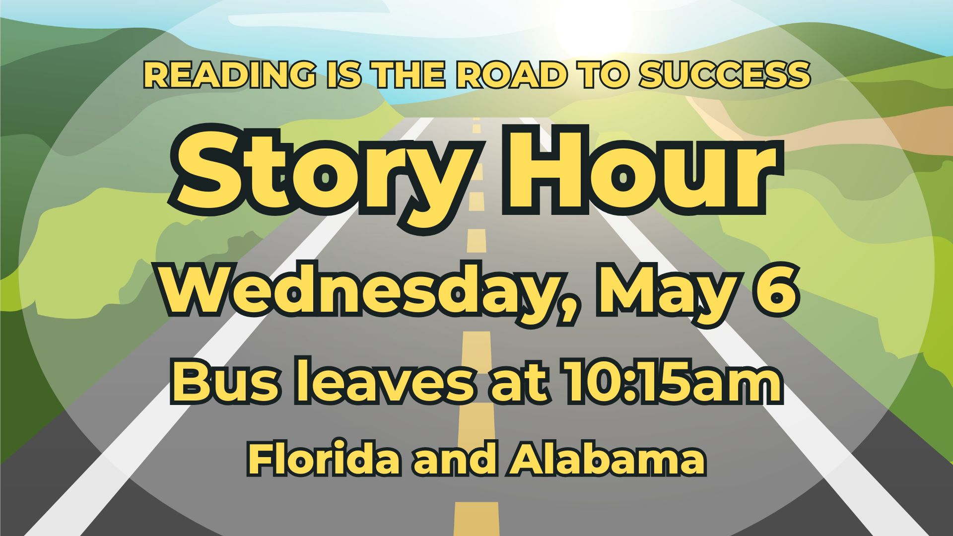 We'll be taking a road trip across the United States during Story Hour 2026, because "Reading is the road to success"!