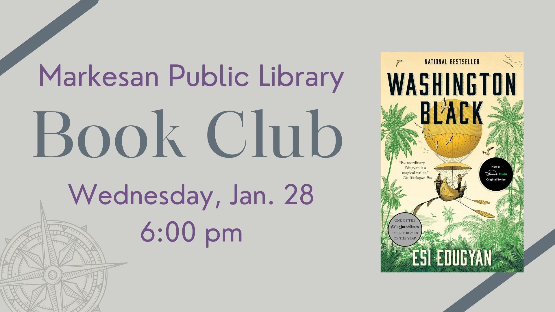 On Wednesday, January 28 at 6:00 pm, Book Club will meet to discuss “Washington Black” by Esi Edugyan. Copies will be available at the checkout desk. You can also find ebook and audiobook copies on the Libby app. Click the title above to see the different editions available and place a hold if you would like a specific one.