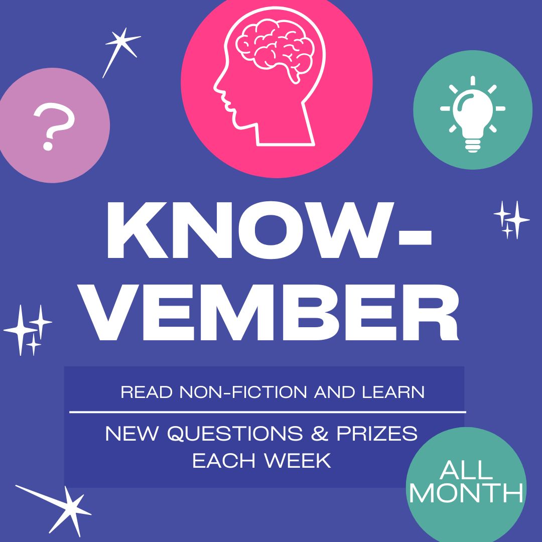 For the month of November, we are showcasing our nonfiction titles! Come in and test your knowledge with weekly questions and prizes. We’ll also have displays of our staff so you can get to KNOW them, too!